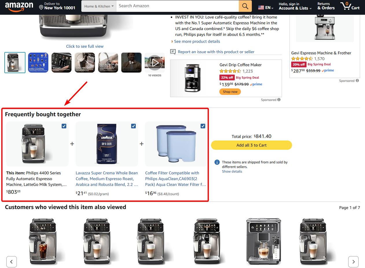 Instead of adding just one product to the cart, customers are presented with a combination of items that make more sense together.