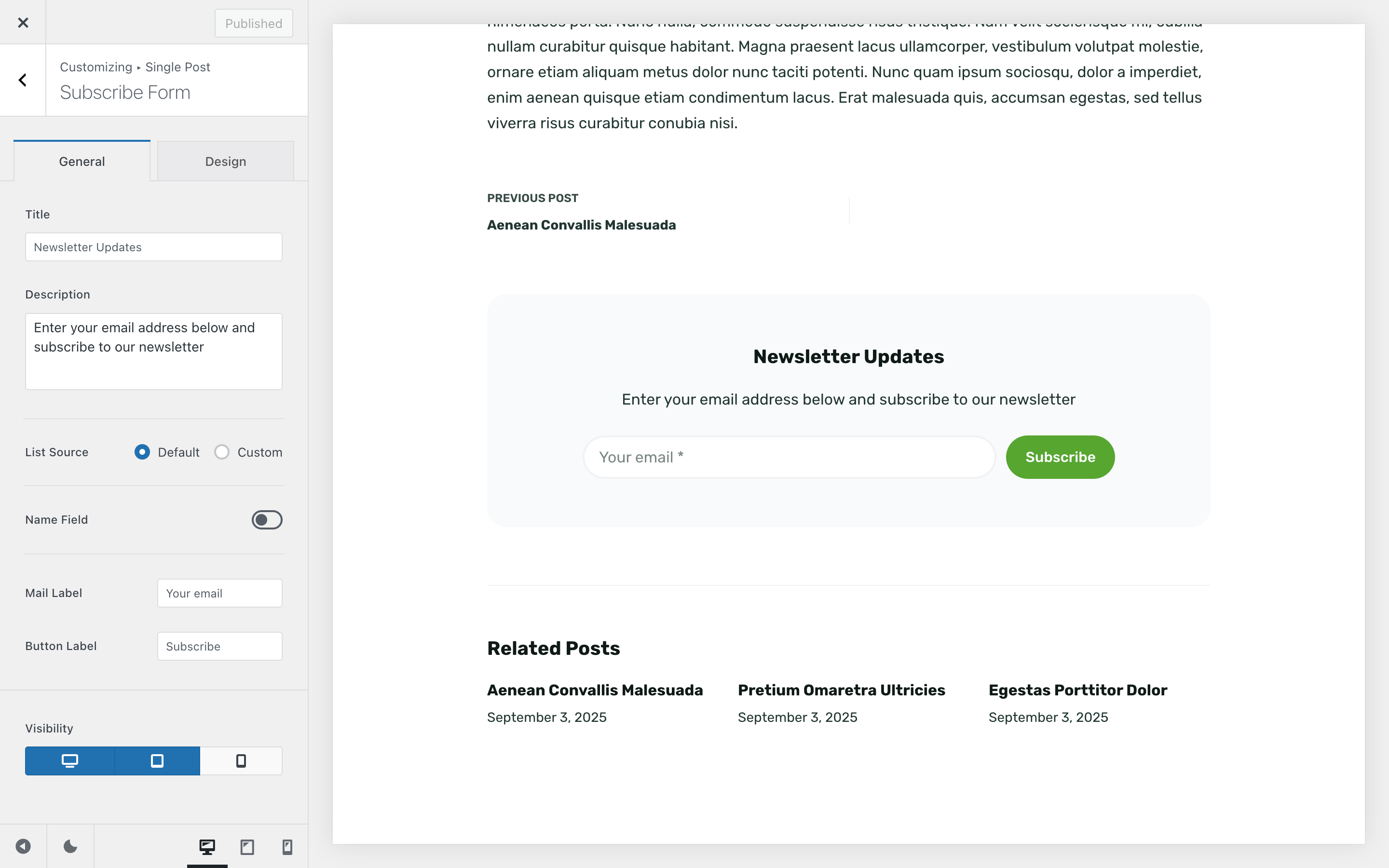 You can also display the Newsletter Subscribe form automatically at the end of your Single Posts. This placement is ideal for capturing readers who’ve just finished engaging with your content.