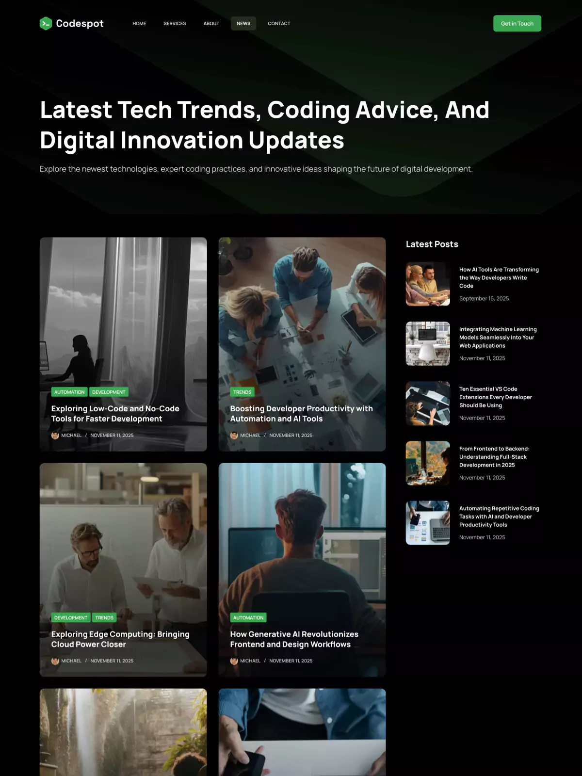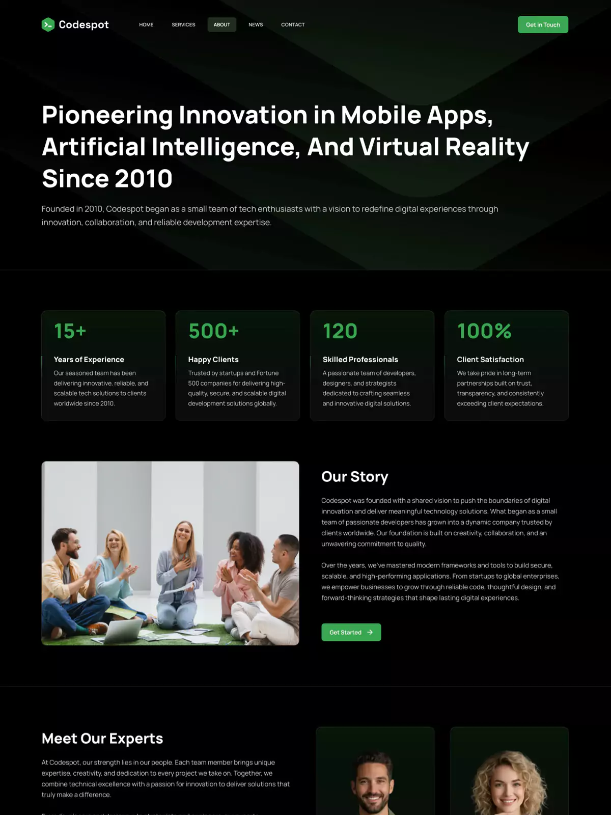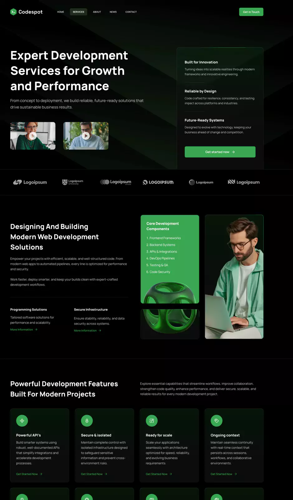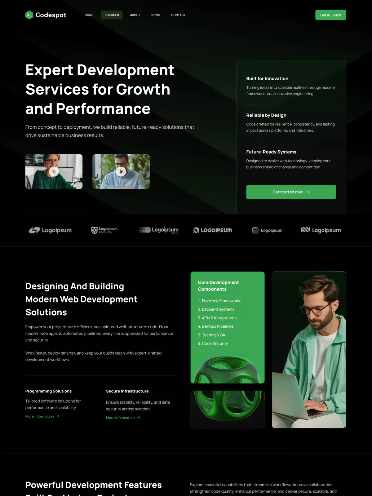 Codespot is a striking starter site built for software agencies, developers, and tech companies looking to establish a professional online presence.