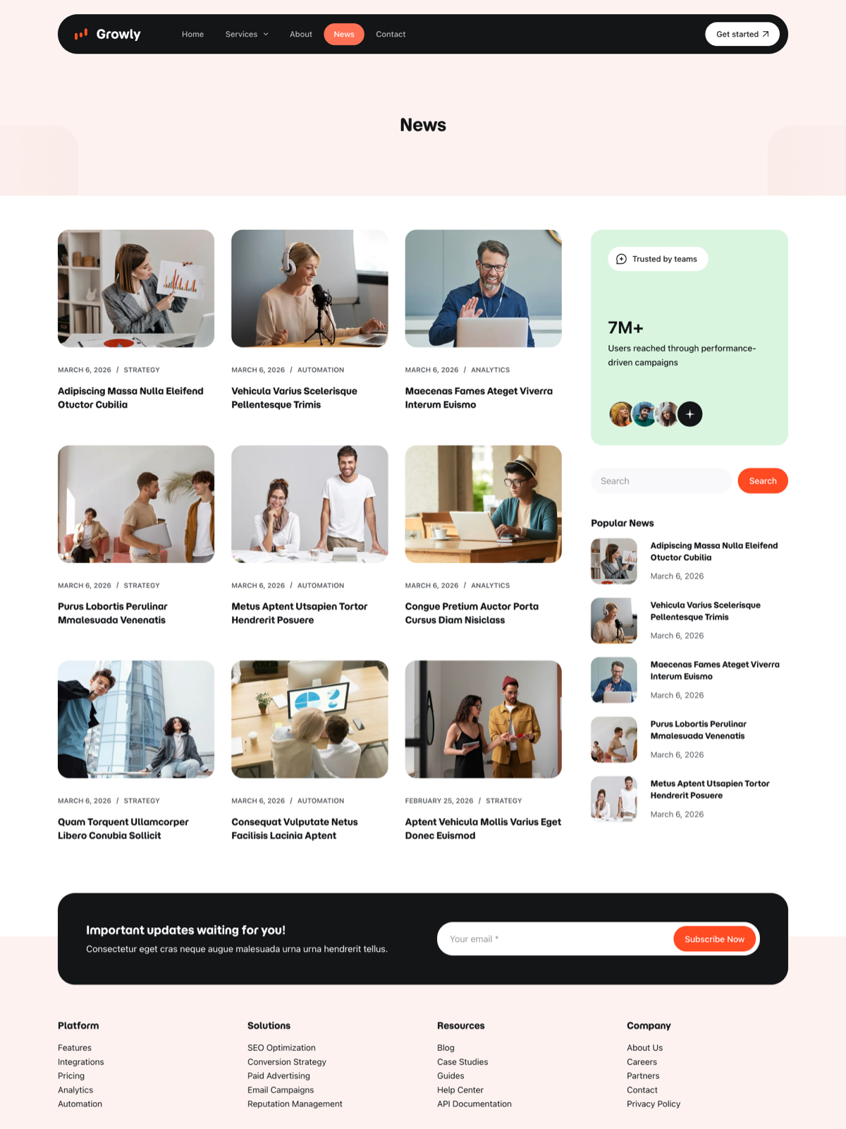 With a modern, data-driven design that emphasises growth and results, Growly showcases your services with clarity and impact. The template comes pre-loaded with features including a mega menu for organising your service offerings, newsletter subscription integration to build your mailing list, and strategically designed call-to-action sections that convert visitors into leads. The layout is built to demonstrate expertise and build trust with potential clients.